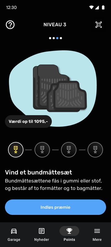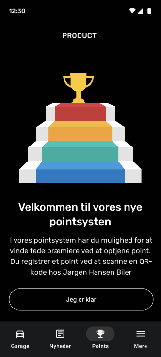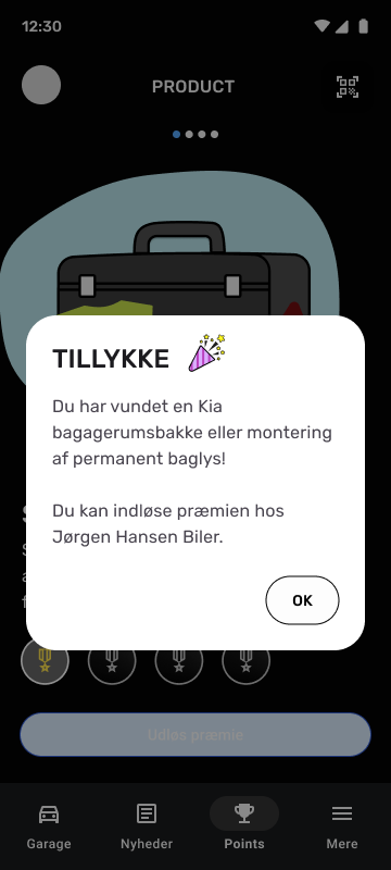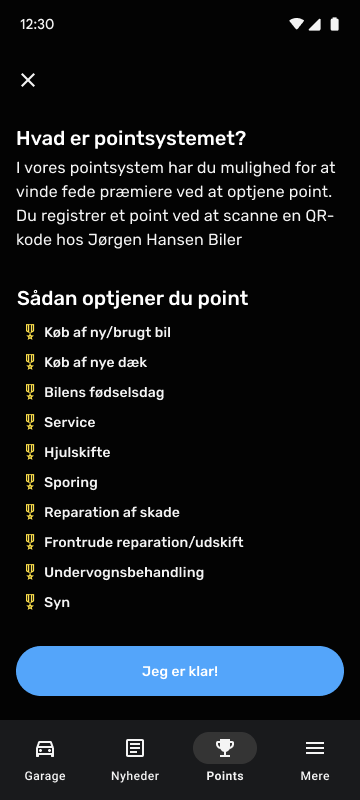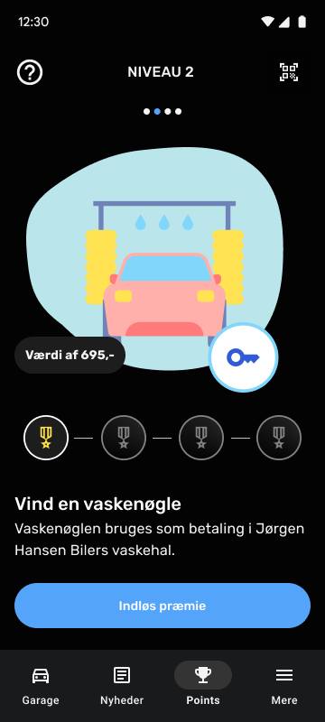 Forskellige services og f.eks. bilens fødselsdag giver kunderne point i et nyt loyalitetsprogram. Point bliver indhentet til appen via en QR kode scanner og automatisk fra backend-systemet.