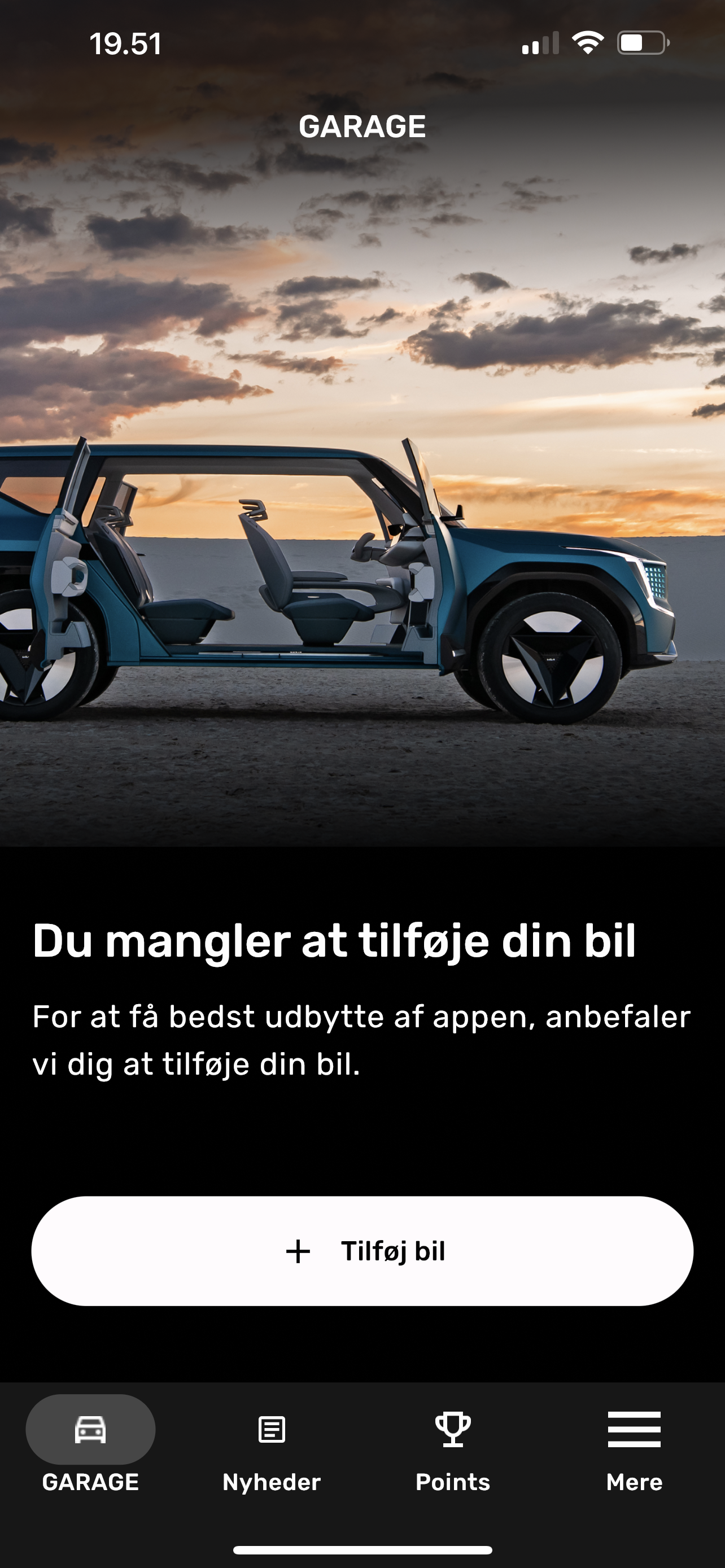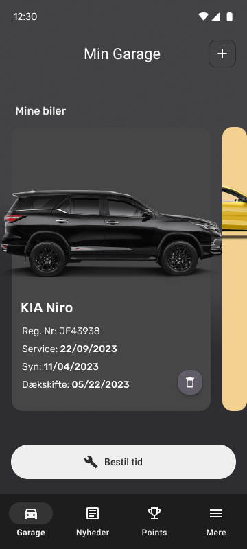 Appen giver kunderne mulighed for at oprette deres bil(er) i garagemodulet, hvor den automatisk indhenter oplysninger om køretøjet og giver et hav af muligheder.